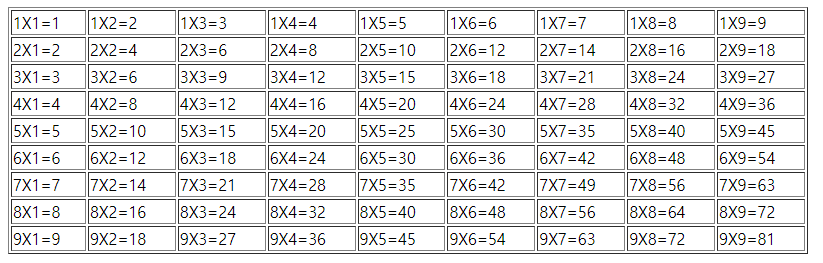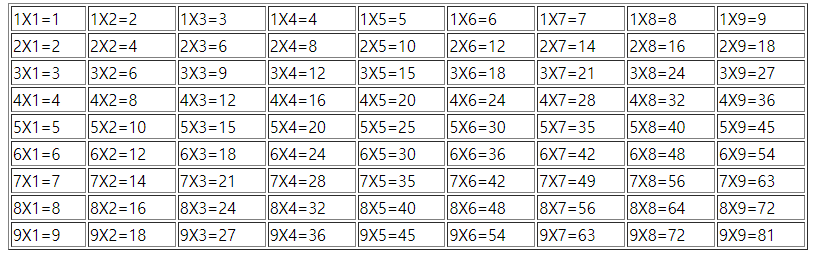 out.println("<td>" + i + "X" + j + "=" + (i*j) + "</td>");