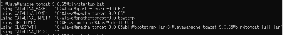 2. 명령 프롬프트에서 Java폴더의 아파치톰캣폴더안의bin폴더를 경로로한다