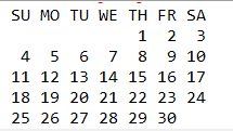 out.println( "<td>SU</td><td>MO</td><td>TU</td><td>WE</td><td>TH</td><td>FR</td><td>SA</td>" );