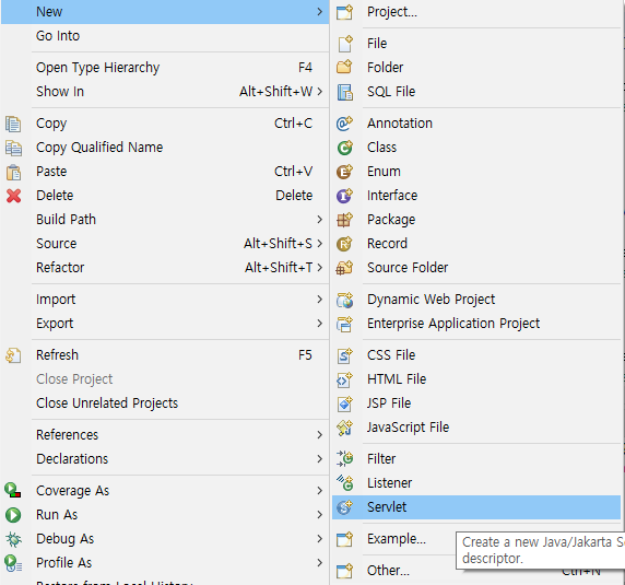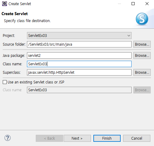 클래스 생성시 Browse에서 HttpServlet 상속받기