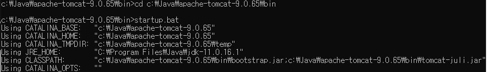 cmd로 아파치톰캣 경로설정후 실행