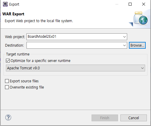 배포하고 싶은프로젝트 우클릭 -> Export -> WAR file