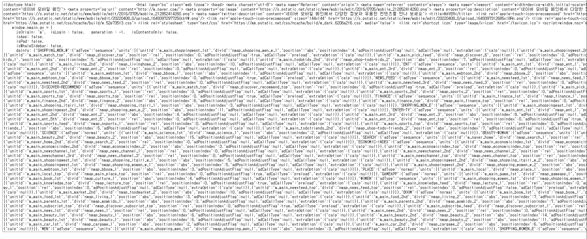 html문서만 출력함.