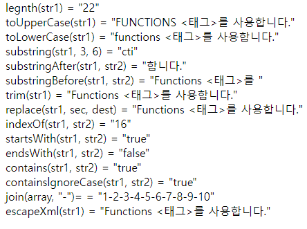 <c:set var="str1" value="Functions <태그>를 사용합니다." />
