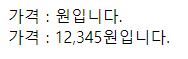 가격 : ${FormatUtil.chageFormat(price,'#,##0')}원입니다.<br>